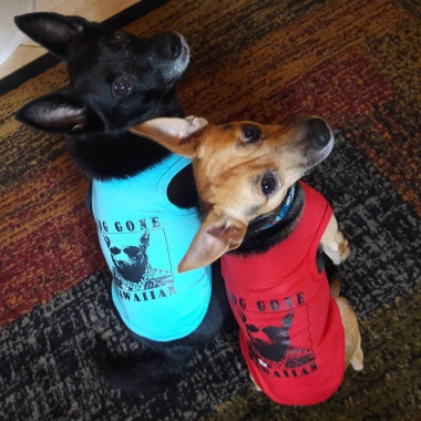 Our super-soft Poly-Cotton, breathable T-Shirts are designed with the small to medium dog in mind (cats too)...and of course we had to include our Exclusive Hawaiian Kine adornments to add a touch of Poi Dog and Dog Gone Hawaiian Style!! That's right, all designs were created here in Hawaii, our Screen Print Transfers are made in the USA, and they're Heat Pressed in Hawaii on the highest quality imported shirts available--"Made in Hawaii."