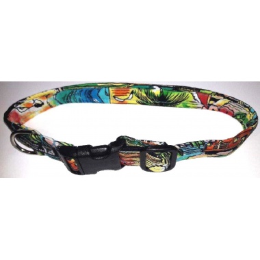 Each item is hand-made, so no two collars or leashes are exactly the same--ONE of the nice things about them!   Smaller width items show less pattern--more about the colors. (shown is a 1" Large Collar).